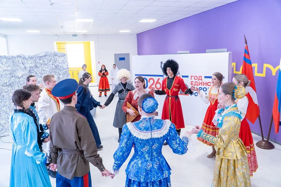 Владимир Путин объявил открытым Год единства народов России во время проведения федерального просветительского марафона «Россия – семья семей» Общества «Знание». В масштабном событии приняли участие представители всех 89 регионов нашей страны, в том числе волгоградская молодежь. Фото: пресс-служба администрации Волгоградской области Волгоградская область присоединилась к церемонии открытия Года единства народов России. Старт ему дал президент Владимир Путин на просветительском марафоне с участием свыше пяти тысяч молодых людей – представителей 194 народов РФ, а также гостей из ближнего зарубежья. Мероприятие прошло в Национальном центре «Россия». Волгоградцы участвовали как очно, так и в формате телемоста с выступлением казачьего коллектива и проведением тематических мероприятий по всей области. Город-герой на марафоне «Россия – семья семей» представляли восемь делегатов, в числе которых студенты социально-педагогического университета. Молодые люди вышли в национальных костюмах народо