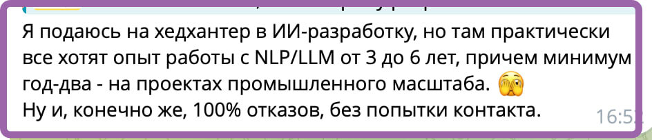 Такой парадокс - все хотят взять сразу опытных, а где людям найти опыт, если не берут? Вот и в ИИ аналогично, см