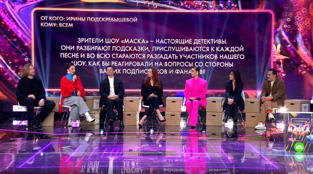 8 февраля в 20:20 на НТВ стартует 7 сезон нашего любимого шоу МАСКА, и сегодня в ВК прошла прямая трансляция с эксклюзивными подробностями и презентацией некоторых костюмов. Я собрала для вас краткую выжимку происходящего, чтобы вам не пришлось два часа смотреть. Презентацию неизменно вёл Вячеслав Макаров, приглашёнными гостями были участники прошлых сезонов: IVAN, Ева Власова, Кирилл Туриченко, Эвелина Бледанс, Севиль, Мария Зайцева, Эльчин Азизов.Поболтали, поотвечали на вопросы зрителей и отправились в зрительный зал. Тимур Вайнштейн и Юлия Сумачёва традиционно рассказали об особенностях этого сезона, о костюмах и участниках. Из главного - один участник, для которого уже был сделан костюм, отказался от участия, и за месяц команда создавала новую маску новому герою. Четыре постоянных члена жюри поиграли и посмотрели на новые маски, одну из которых - Коралла - создавали по рисунку зрителя шоу. Так же мы увидели Жука, Колибри, Снегиря (который выглядит как голубь) и Лягушку.