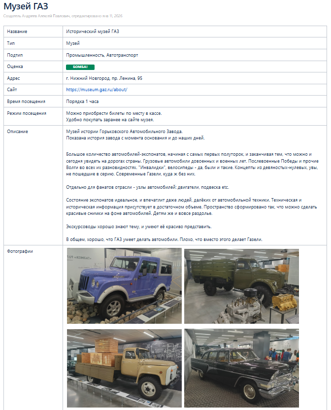 Насколько эта инициатива окажется полезной, и будет ли кто-то поддерживать этот раздел, кроме меня - время покажет. На данный момент польза есть хотя бы для моего рассказа про Нижний. Время идёт, какие-то нюансы забываются, а тут записывал по горячим следам, пока эмоции еще живы.