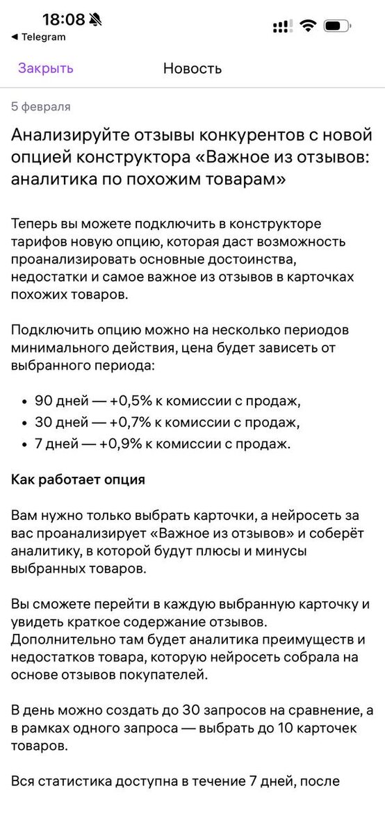⚡Сравнение отзывов от ВБ за процент. Новая тарифная опция.