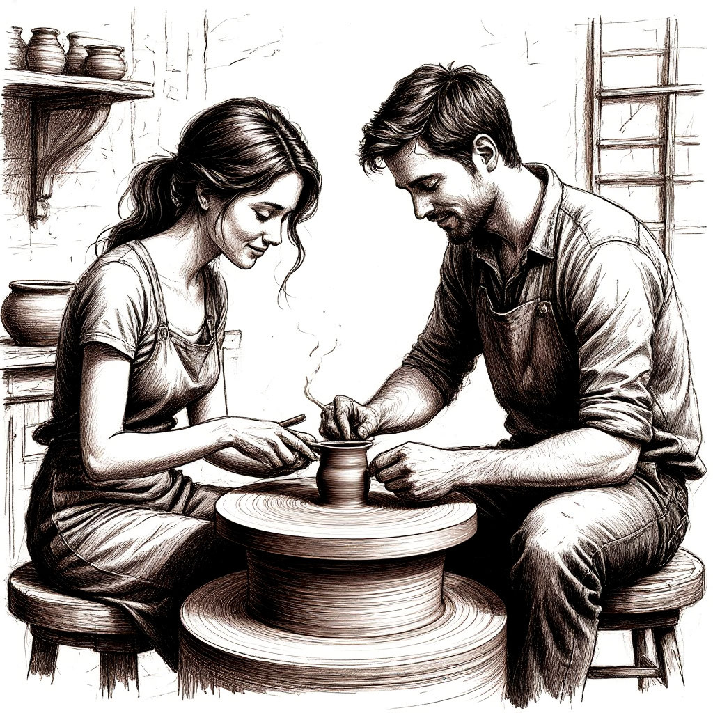 Первая настоящая тревога, как осколок, вонзилась в меня, когда я опоздал. Начальник задержал со срочным правками. Я примчался в мастерскую почти на час позже. Все уже разошлись, горел только свет над её рабочим столом. Она не крутила глину. Она сидела и смотрела на мою последнюю работу — высокий, вытянутый кувшин, который уже был высушен и ждал обжига. В руках у неё была струна.