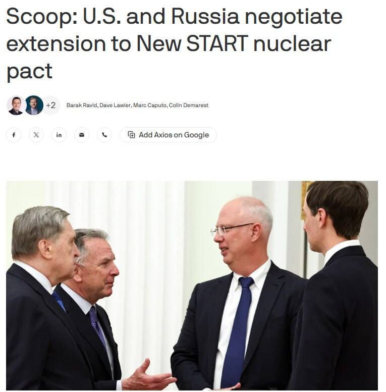 (Договор между Российской Федерацией и Соединёнными Штатами Америки о мерах по дальнейшему сокращению и ограничению стратегических наступательных вооружений) Переговоры прошли в Абу-Даби при участии спецпосланников президента США Стива Уиткоффа и Джареда Кушнера и российских представителей. Речь идёт о продолжении соблюдения условий договора, возможно, ещё на несколько месяцев. Окончательное решение требует одобрения Трампа и Путина. СНВ-III остаётся последним действующим соглашением, ограничивающим ядерные арсеналы США и России, на долю которых приходится около 85% мировых ядерных боеголовок. @dlon Новости от Dlon. Подпишись