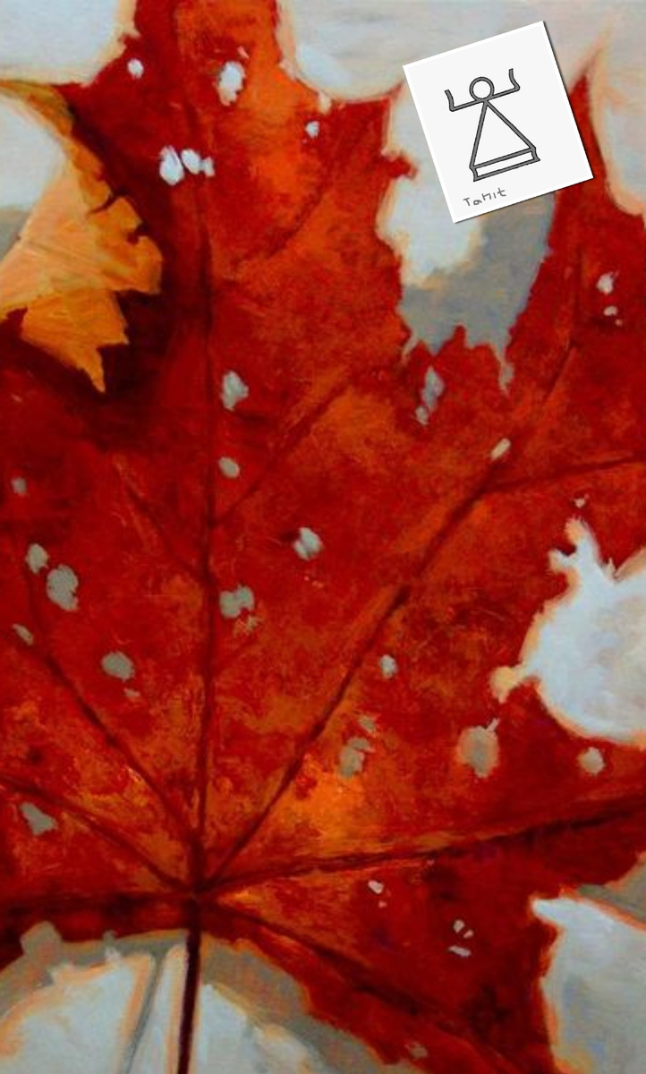 Кленовый лист. Не дубовый, как у неё. Кленовый — ярко-красный, сигнальный.