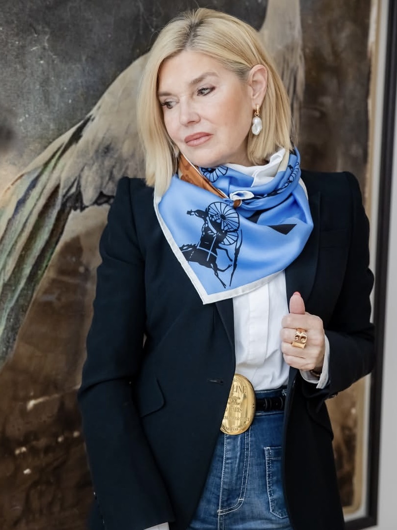 Шелковый платок или кашемировый палантин — универсальный инструмент стиля. Повязанный на шею, наброшенный на плечи или прикрепленный к ручке сумки, они добавят цвета, движения и той самой неуловимой парижской небрежности.