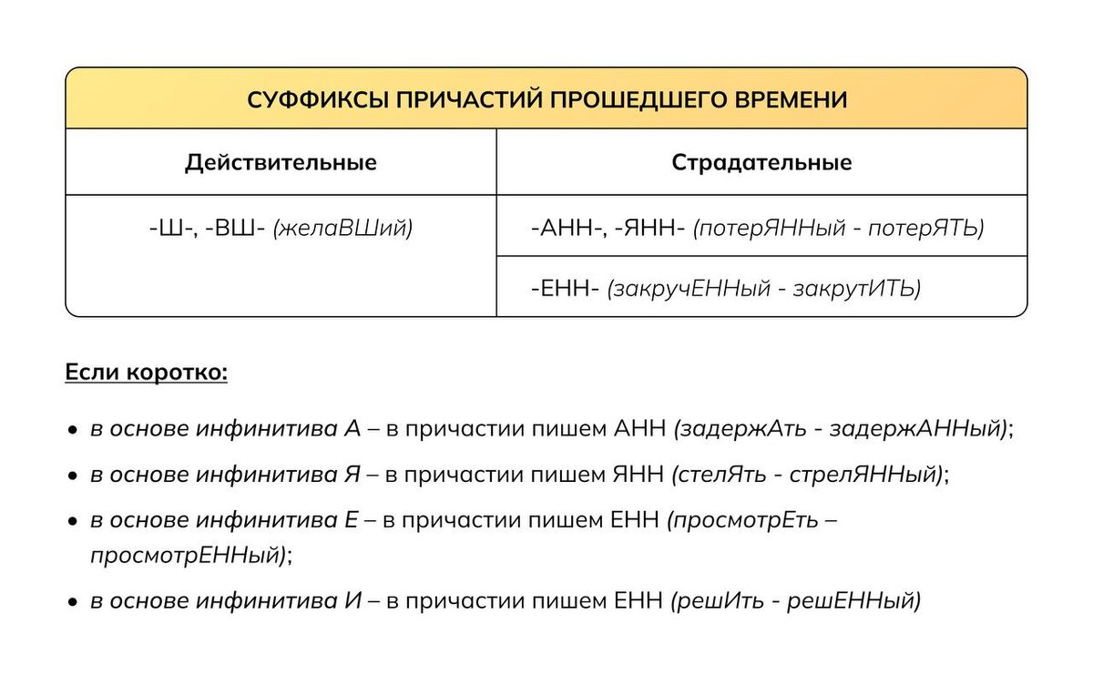 Сохраняй таблицу с суффиксами причастий прошедшего времени для задания №12 🤩