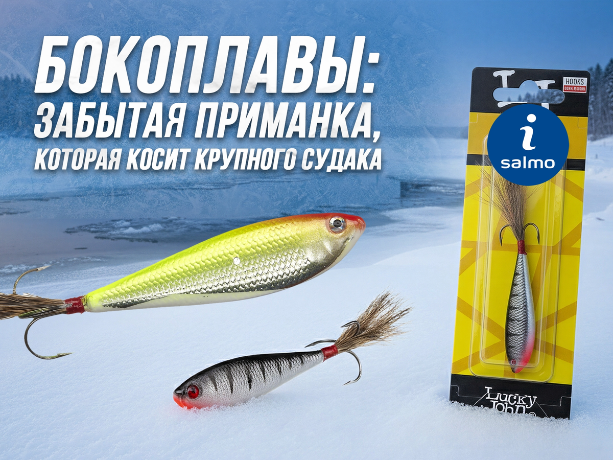Приманка асимметричной формы, предназначенная для ловли в отвес. Несмотря на простую конструкцию, она по праву считается одной из самых результативных по судаку бершу и щуке, особенно в периоды слабой активности. Способна спровоцировать поклёвку хищника даже в период глухозимья. Бокоплав отлично работает за счет продуманной формы и своей характерной игре. В отличие от балансиров, которые движутся по классической «восьмёрке», бокоплав при подбросе уходит в сторону, а затем возвращается к точке лова по широкой дуге, создавая плавное и естественное движение. Разбираем на примере бокоплавов OSSA от Lucky John. Плоское тело и мягкий хвост создают широкие горизонтальные движения в толще воды. При взмахе удилищем приманка уходит в сторону и плавно возвращается назад, имитируя ослабленную рыбку: именно такую добычу чаще всего атакует хищник. Бокоплав крепится через верхнее отверстие: леска проходит через тело приманки и привязывается к тройнику, который служит стопором. Для защиты узла рекомен