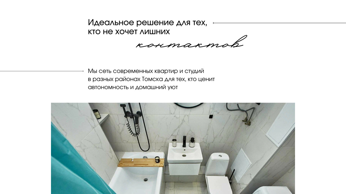 Ищете квартиру посуточно в Томске, но не хотите тратить время на встречи с администраторами и стоять в пробках? Мы предлагаем идеальное решение для тех, кто ценит свободу, комфорт и время. Наши квартиры — это идеальное сочетание уюта частного жилья и стандартов отельного сервиса. Мы создали для вас уникальную систему, которая позволяет заехать в квартиру в любое время, без лишних встреч и задержек. Забудьте о встречах с администратором и подписаниях договоров в офисе. Мы автоматизировали процесс заселения, и теперь вам достаточно получить индивидуальный код от кейбокса. В любое время суток — будь то раннее утро или поздняя ночь — вы сможете заехать в квартиру без ожиданий и лишних действий. Не нужно волноваться о бытовых мелочах — мы позаботились обо всём. Каждая квартира оснащена современным оборудованием: от высокоскоростного Wi-Fi до бытовой техники, фена, утюга и даже посуды. Всё, что вам нужно взять с собой — это личные вещи. Всё остальное мы предоставим. После каждого гостя мы пр
