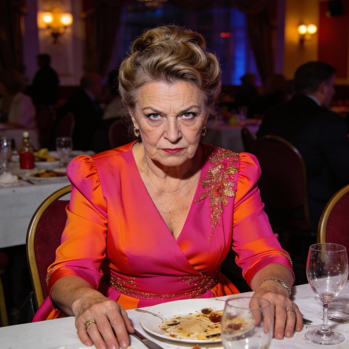 Когда вынесли горячее — утку, рыбу в соусе, медальоны из телятины, — я увидела, как Кристина, даже не дождавшись, пока блюдо обойдёт весь стол, нацепила себе на вилку самый большой кусок утки. Её муж Денис загрёб себе три медальона. Люда накладывала рыбу так, что соус стекал на скатерть.