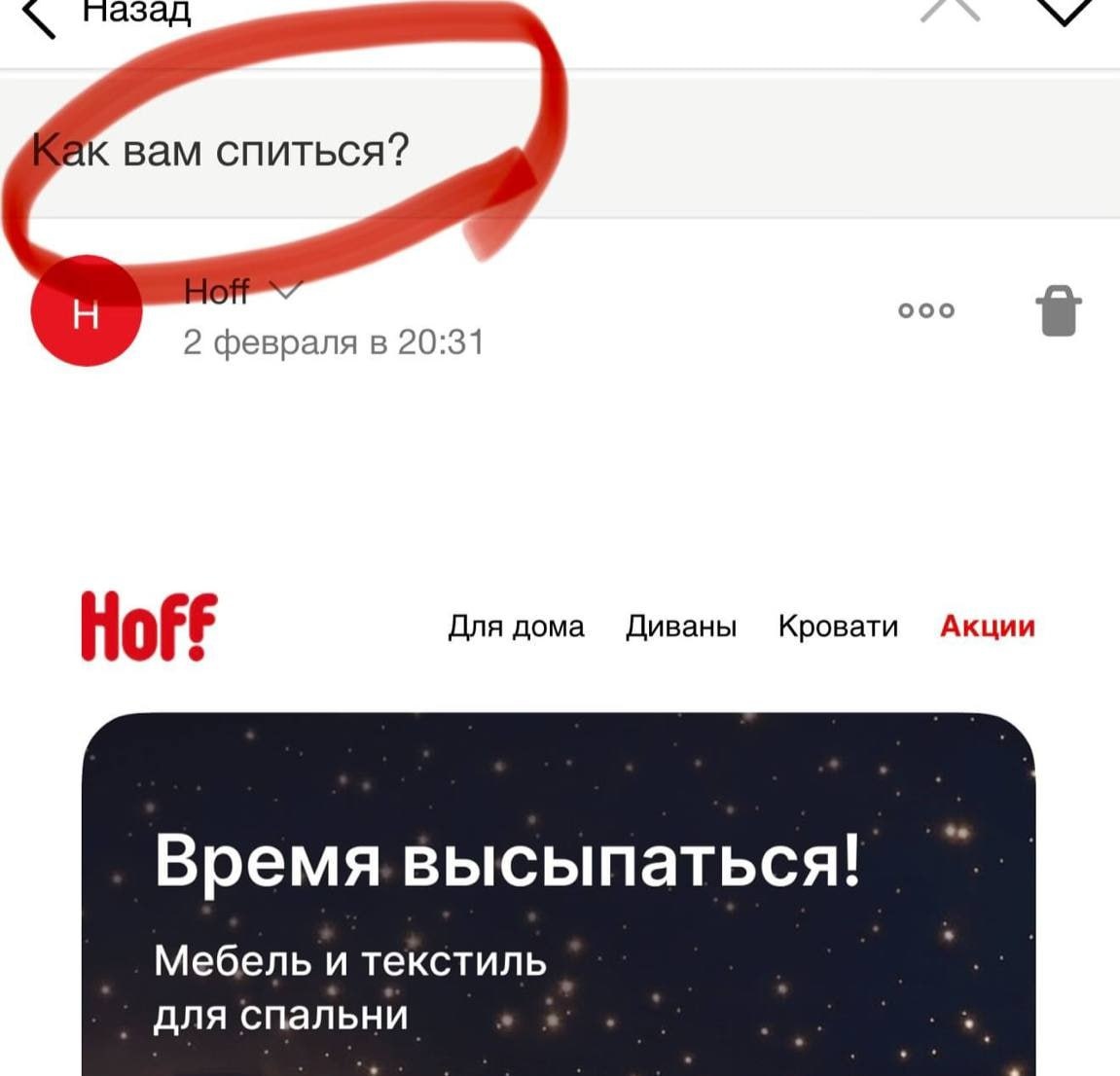 🧌 На своем сайте Hoff тонко намекает на ситуация с новой мебелью в России