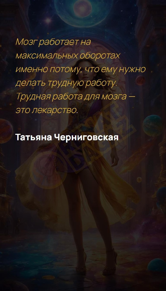 Мозг работает на максимальных оборотах именно потому, что ему нужно делать трудную работу. Трудная работа для мозга — это лекарство. Татьяна Черниговская Архитектура вашей души | Архитектура вашей души T | VK | Pin | YouTub | Dzen #доход #философияжизни #верность #блог #жизненныйурок #доход #психологияжизни #энергияжизни #жизньпрекрасна #5число #5февраля