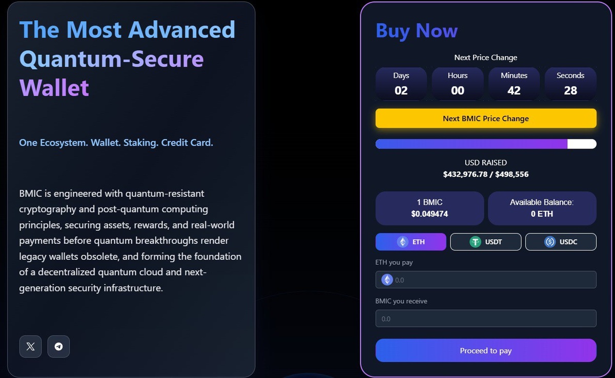 ⚡️Виталик Бутерин призывает разработчиков отходить от "копипаста" EVM-чейн в сторону инновационных решений, сфокусированных на безопасности. На фоне этого заявления проект BMIC, использующий пост-квантовую криптографию для защиты от будущих угроз, активно привлекает инвестиции, собрав на пресейле уже $433 000. Инвесторы проявляют интерес к проектам, решающим фундаментальные проблемы безопасности, а не только скорость транзакций. 📊 Ключевые моменты: - Бутерин критикует насыщение экосистемы Ethereum "зомби-чейнами" и призывает к глубоким технологическим прорывам в приватности и безопасности. - BMIC фокусируется на квантово-устойчивых решениях, используя пост-квантовую криптографию и ERC-4337 для устранения уязвимостей публичных ключей.