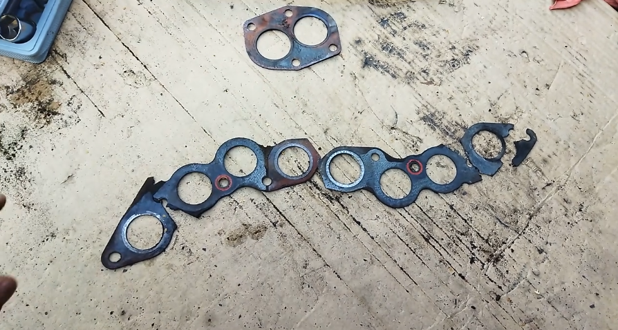 Моя семёрка начала посапывать. Оказалось прогорела прокладка коллектора. Пока разбирался с коллектором, заметил, что подушка двигателя тоже в плохом состоянии — она разделилась пополам. Решил заменить её сразу, раз уж я всё равно снял коллектор и был доступ к подушке двигателя. Чтобы снять подушку, подставил домкрат под корпус коробки, где крепится стартер, и приподнял двигатель. Это позволило вытащить старую подушку. Она была в ужасном состоянии — даже пружина лопнула. Теперь буду ставить новую. После замены подушки начал собирать всё обратно. Сначала наживил нижнюю гайку, потому что там ещё идёт шайба, а потом затянул её через отверстие. Пока не стал опускать домкрат до конца, потому что нужно ещё вставить трубу в коллектор и закрепить её. Поставил новую прокладку и прикрутил коллектор. Приемную трубу прикрутил к коллектору с новой прокладкой. Пока наживил, теперь буду затягивать потом опущу домкрат, а затем продолжу сборку. Всё собрал, завёл машину. Залил тосол, выгнал воздух — ни