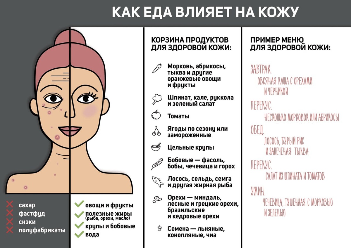 Что она в нем видит? Знаешь ли ты, что состояние кожи зависит не только от кремов, но и от тарелки? 🍽 Одни продукты работают как «строители» красоты, а другие — как скрытые вредители. ✅ В «корзине молодости»: ягоды, жирная рыба, зелень, орехи и яркие овощи. Они дарят антиоксиданты, коллаген и борются с воспалениями! ❌ В «черном списке»: сахар, фастфуд и полуфабрикаты. Они могут провоцировать высыпания, тусклый цвет и ранние морщинки. Запоминай простое правило: чем больше цвета и натуральности на твоей тарелке — тем больше сияния на твоем лице! ✨ Сохраняй нашу шпаргалку, чтобы питаться для красоты изнутри!