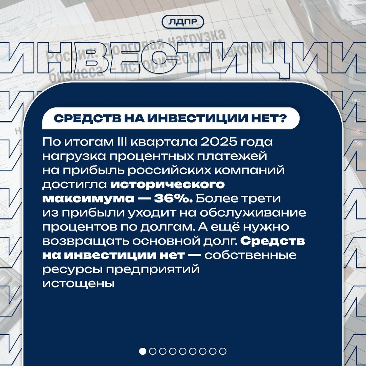 О рисках экономического спада эксперты говорят не первый год. Недоступные кредиты, растущие требования к финансовой дисциплине бизнеса, сокращение объёмов поддержки, регулярная индексация цен на услуги естественных монополий — всё это существенно тормозит прогресс. Цифры говорят сами за себя: на протяжении первых трех кварталов 2025 года темпы роста ВВП России снизились с 1,4% до 0,6%, а по итогам 2025 года рост ВВП составил всего 1%. ➡Председатель ЛДПР в своей статье подчеркнул, что проблема в отсутствии образа будущей России и потерянной связи между инструментами и целями, когда ключевая ставка и инфляция из инструментов стали самоцелью. 🔗Леонид Слуцкий настаивает: нашей стране нужна Новая индустриализация и конкретные меры для экономического роста. Подробнее о них — в карточках.