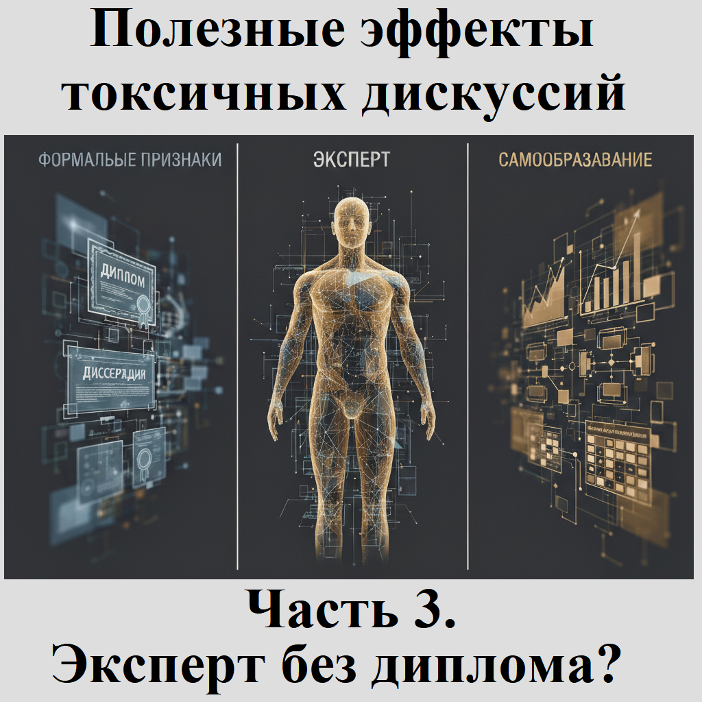 И этот вопрос для меня весьма интересен, так как я многократно сталкивался в тех или иных дискуссиях «аргументами» из области «Кто ты такой, чтобы слушать твои мысли и аргументы по таким вопросам? Ты что, специалист? Какое у тебя образование?» и т.д.