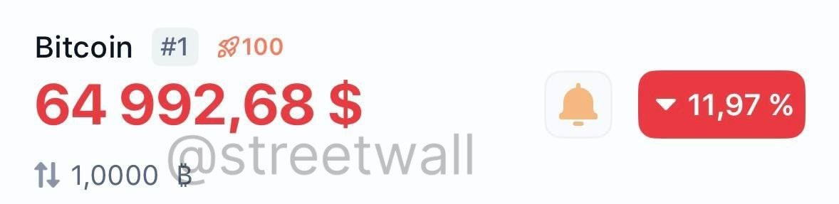Биткоин продолжает падение — за день крипта потеряла уже 11%.