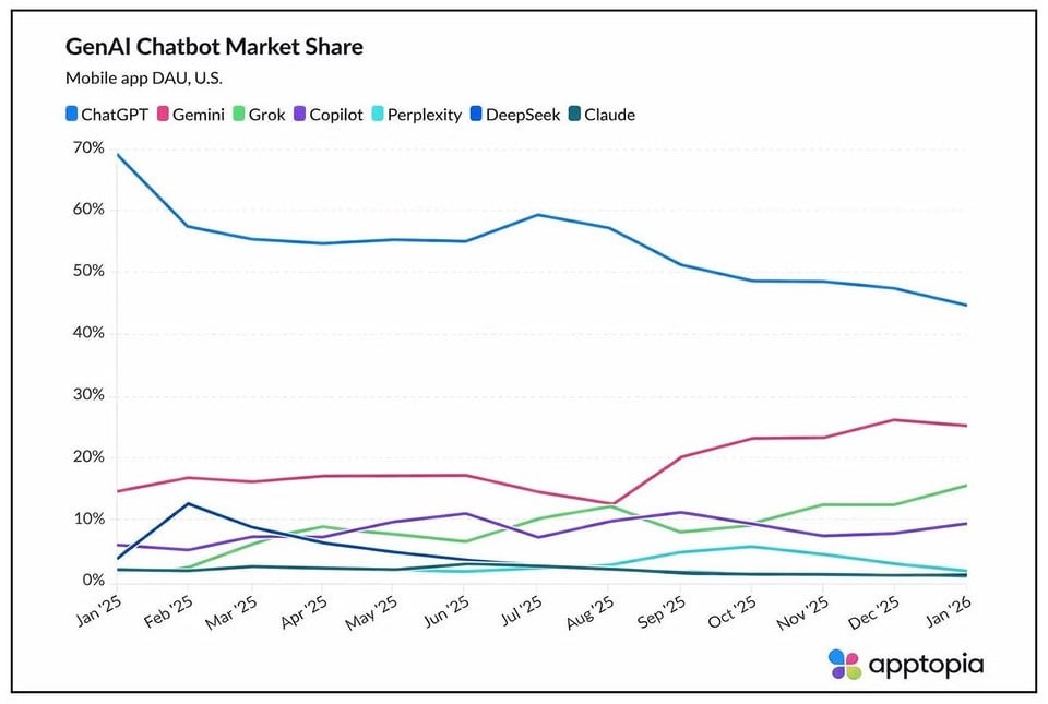 ChatGPT теряет долю в мобильном сегменте США — конкуренты начали откусывать аудиторию системно и быстро
