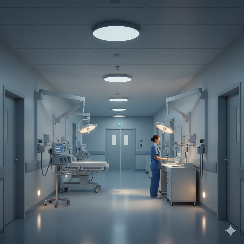 Освещение в больнице влияет не только на видимость. Оно напрямую связано с работой персонала, самочувствием пациентов и соблюдением санитарных норм. В медицинских зданиях свет не воспринимается как элемент интерьера. Здесь он становится частью рабочей среды, где ошибка может стоить времени, ресурсов и здоровья. Почему освещение в больнице регулируется строже Для медицинских учреждений действуют санитарные правила и строительные нормы. Они задают уровни освещенности, требования к цветопередаче и равномерности света. Эти параметры напрямую связаны с диагностикой и лечением. Освещение входит в перечень факторов, влияющих на условия оказания медицинской помощи и подлежит проверке при вводе объекта в эксплуатацию и в ходе плановых контролей. Нарушения по свету чаще всего связаны не с количеством светильников, а с их характеристиками и неправильным размещением. Как назначение помещений влияет на требования к свету В медицинских учреждениях освещение проектируют не «по зданию в целом», а по к