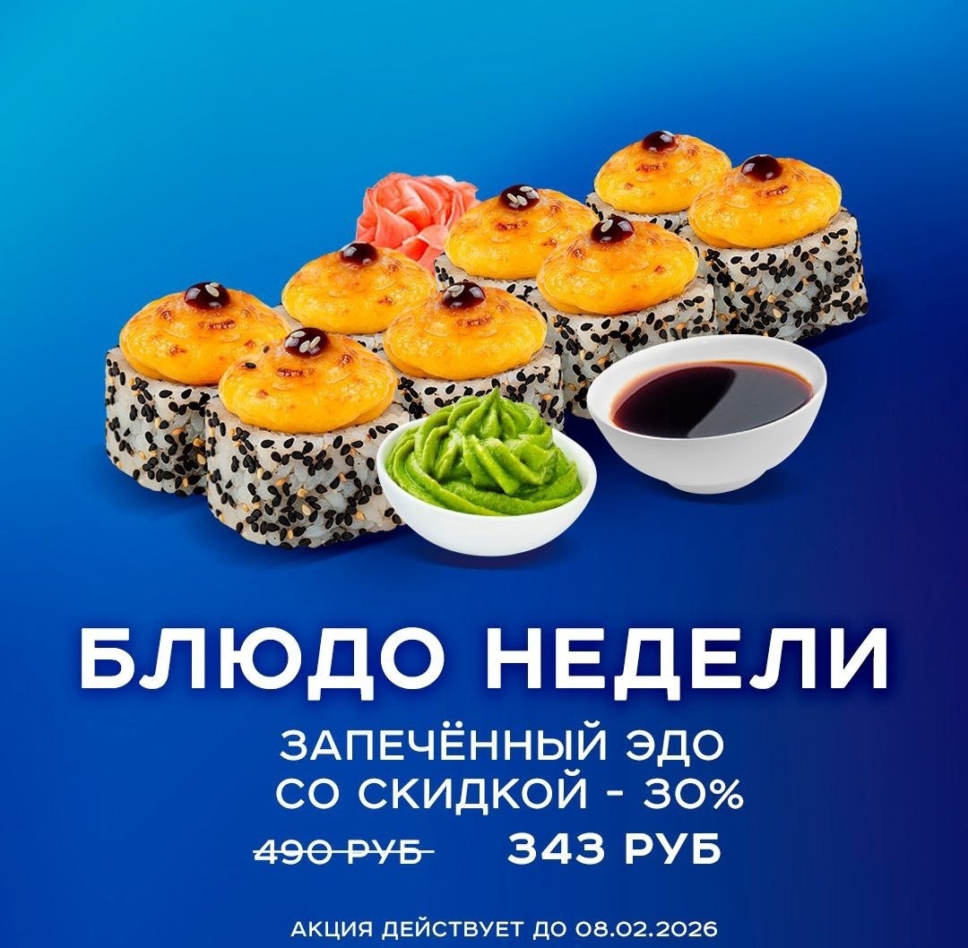 🥘 🔥 Блюдо недели — Запечённый Эдо🔥 Цена со скидкой -30%🤑 Горячие роллы с креветкой, авокадо и двойным соусом🥰 Успейте попробовать
