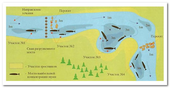 Это настоящая «столовая» и «общежитие» для рыбы на реке. Здесь скапливается сносимый течением корм, вода насыщена кислородом, а течение позволяет экономить силы. 3. Разница в глубине (бровка, свал)