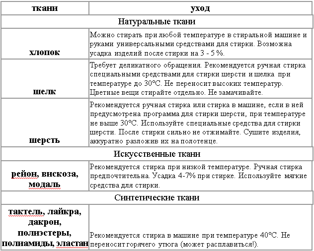 Для того, чтобы Ваше белье и одежда как можно дольше сохраняли цвет, качества необходимо соблюдать рекомендации по стирке и уходу. Качественное белье или одежда всегда имеет ярлык производителя изделия, на котором указан его состав и рекомендации по уходу. Некоторые рекомендации и расшифровка условных обозначений представлены ниже. Рекомендации для всех материалов: На этикетках наиболее часто встречаются такие обозначения: