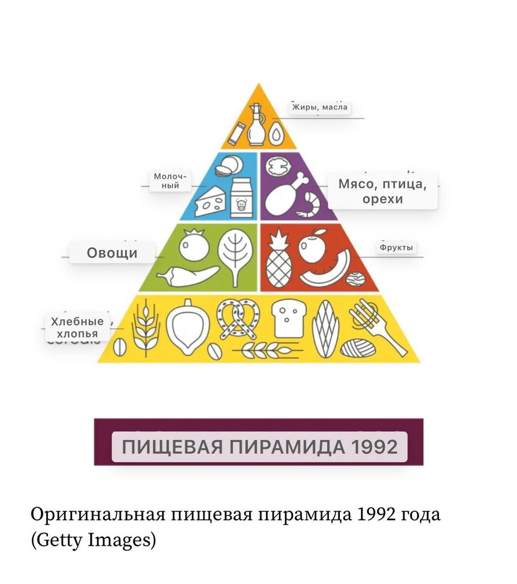 Документ выпустили под руководством министра здравоохранения Роберта Ф. Кеннеди-младшего*. *Роберт Кеннеди-младший — сторонник теорий заговора и антипрививочник. Просто имейте это в виду. 🏓 В чем суть: Пищевая пирамида перевернулась с ног на голову. Теперь на вершине пирамиды находятся белковые продукты, включая красное мясо, птицу, рыбу, яйца, а также молочные продукты с естественной жирностью. Что за естественная жирность такая, осталось за кадром. 🏓 Раньше: