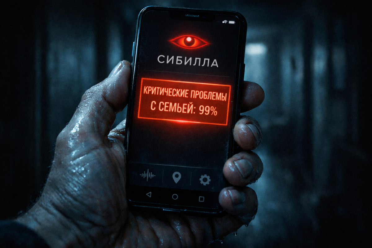 Сейчас все помешались на приложении «Сивилла». Это нейросеть, которая анализирует твои соцсети, банковские транзакции, геолокацию и пульс с умных часов, чтобы предсказывать будущее.