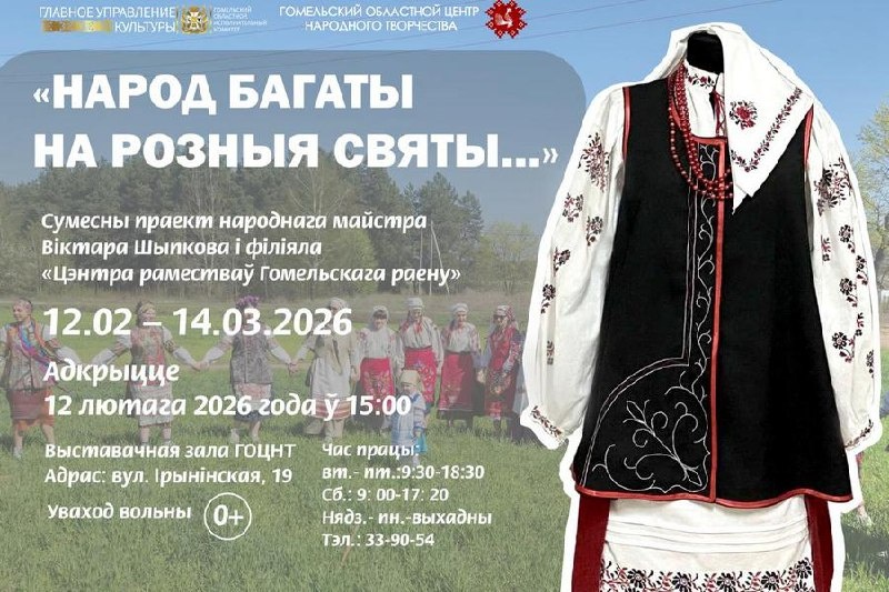 У выставачнай зале Гомельскага абласнога цэнтра народнай творчасці адбудзецца адкрыццё выставы традыцый паўднёвага ўсходу Гомельскай вобласці «Народ багаты на розныя святы…» Подпишитесь на «Гомельские ведомости»