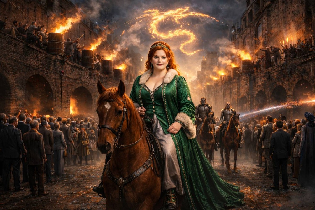 Последней была она. Рыжеволосая женщина в богатой средневековой одежде на гнедом коне выехала в центр двора. Конь встал на дыбы и заржал. Валькирия железной рукой усмирила его и заставила встать смирно. Сначала никто не понял. И только через секунду — узнавание. И ещё через одну — осознание.