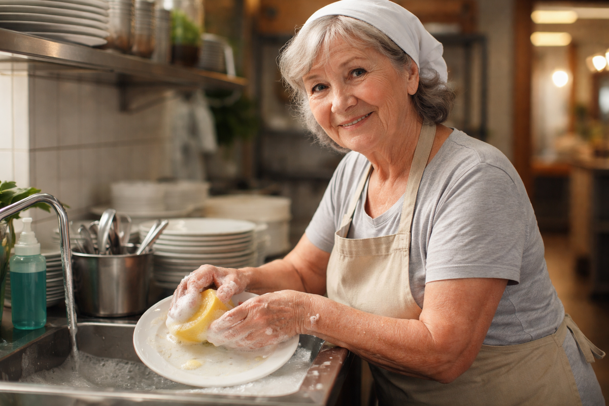 — Посудомойщица! Баба Валя, ты не перенапрягайся! Эти объедки тяжелее, чем сама еда!