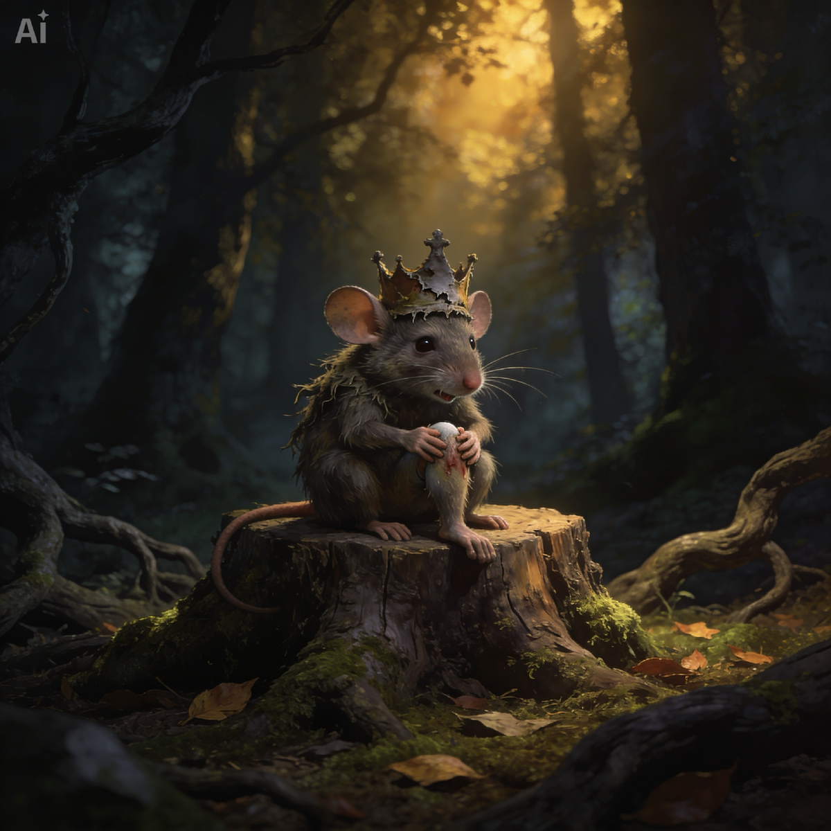Мышиный король резко выпрямился. Боль в колене пронзила ногу, но он не показал виду. Развернулся. Его взгляд упал на крысу Зубастую, которая всё это время притаивалась у основания пня.