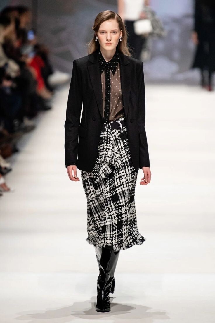 Лучше всего клетка раскрывается в длине миди и ниже колена. Появляется ощущение веса, стиля, собранности. Образ начинает звучать взросло и уверенно.