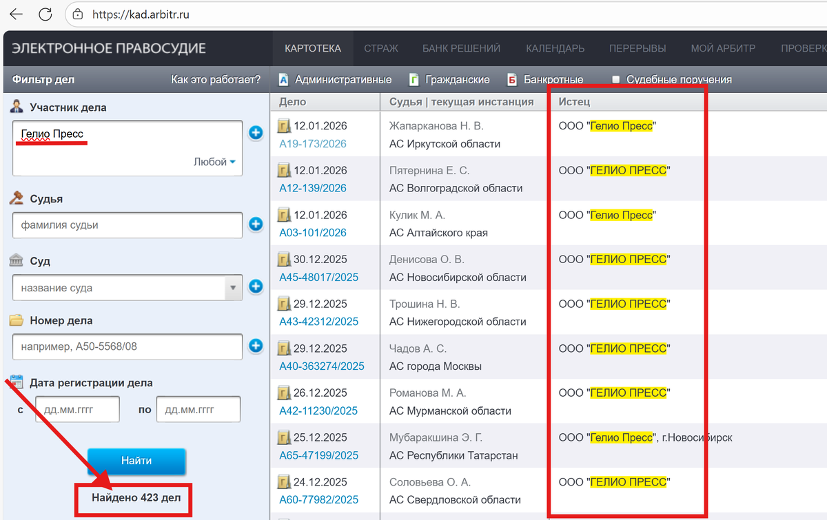 Внимание! Массовые иски и претензии от ООО "Гелио Пресс" за нарушение прав исключительных прав на фотографии и произведения дизайна. 1. Согласно картотеке арбитражных дел - ООО "Гелио Пресс" поданы сотни исков о взыскании компенсации за нарушение исключительных прав. Требования доходят до сотен тысяч рублей! 2. Подан ли на Вас иск реально? Можно проверить на официальном сайте Арбитражного суда. Например, осуществив «поиск себя» в картотеке арбитражных судов: https://kad.arbitr.ru (лучше это в принципе делать периодически). 3. ДОБИТЬСЯ ПОЛНОГО ОТКАЗА В ИСКЕ - РЕАЛЬНО? Каждый случай - уникален. В нашей практике встречались примеры как полного отказа в удовлетворении исковых требований, так и существенного снижения суммы компенсации по делу вплоть до минимально возможной. От чего это зависит? От многих факторов, среди которых: наличие подтверждающих нарушение доказательств; наличие лицензионного договора; степень добросовестности истца и вины ответчика; чрезмерность размера компенсации;