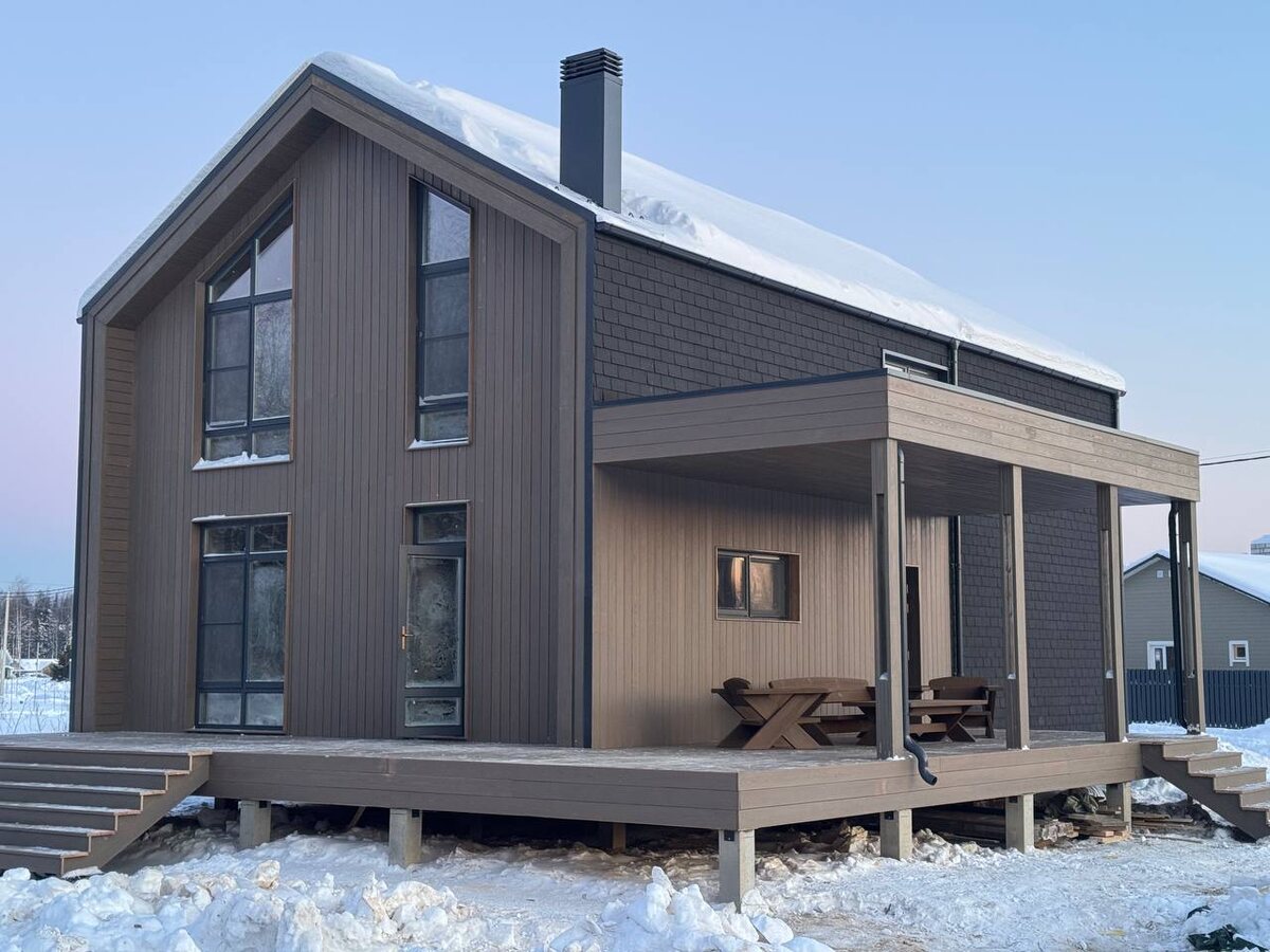 ✔️Дом из соломенных панелей произвели в Казани в августе 2025 ✔️Смонтировали панели в сентябре 2025 ✔️Кровля, фасад и терраса - мягкая черепица Tegola и лиственница ПРИМА ❗️Летом будем делать внутреннюю отделку Оставить заявку на дом вашей мечты можно на нашем сайте👈