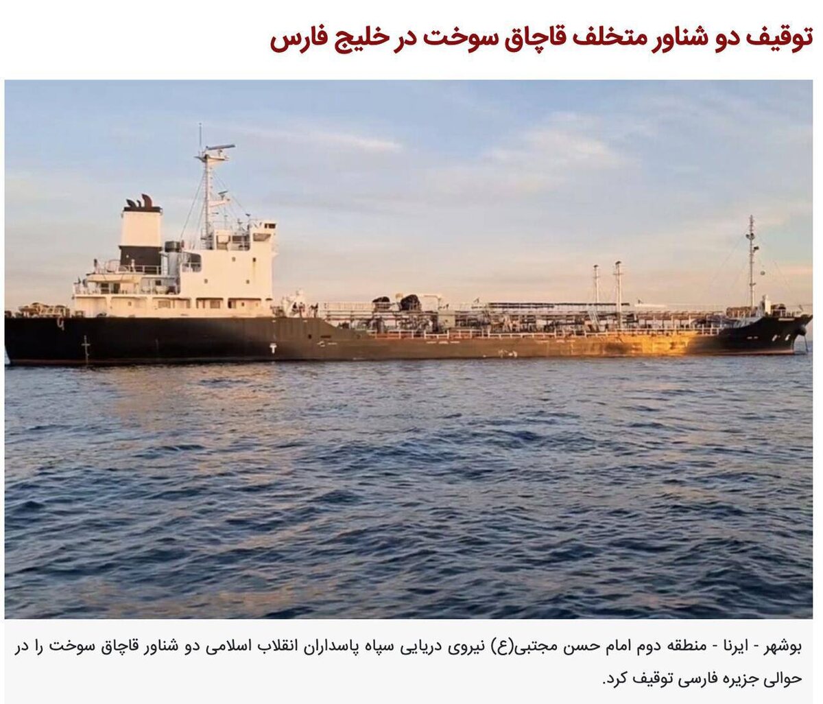 иранскими СМИ новость о задержании КСИР Ирана двух танкеров с контрабандным грузом нефти. Однако танкеры и груз принадлежат иранцам, контрабанда нелегальной нефти и продуктов нефтепереработки в соседние с Ираном страны является обыденным делом, поскольку на внутреннем рынке топливо продаётся по значительно более низким ценам, чем в соседних странах. Чаще всего нефть сбывается путём перекачки на другие суда в открытом море, а прибыль от подобных операций превышает таковую от легальной реализации в 15-20 раз. Так, в конце декабря аналогичным образом был задержан танкер REEM ALKHALEEJ, а 1 февраля Малайзией были задержаны два иранских судна, осуществлявших перекачку нефти с одного судна на другое в Малаккском проливе. #Иран Военный Осведомитель