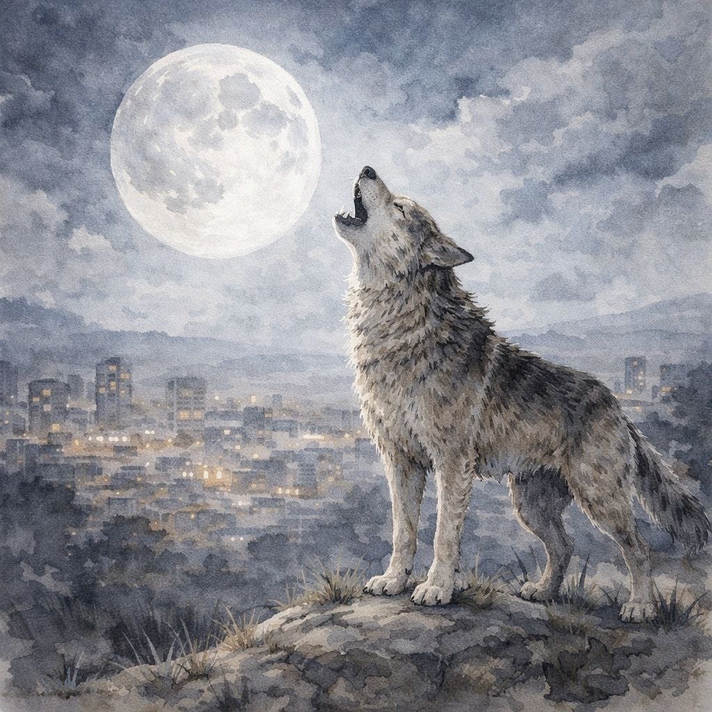 Представьте себе волка, который, несмотря на свою природу, пытается адаптироваться к жизни в человеческом обществе. Он охраняет дом своего хозяина, лает, как собака, и выполняет все обычные функции сторожевого пса.
