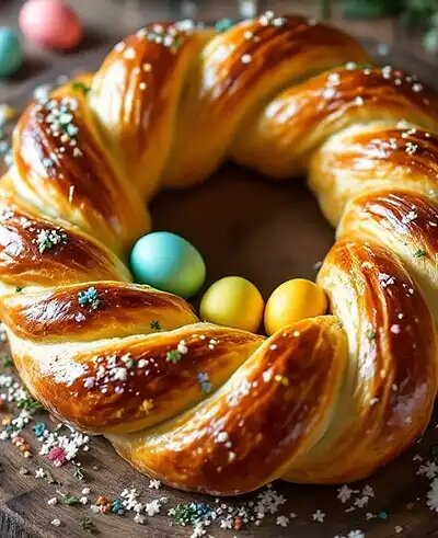 Пасха - время праздника, и что может быть лучше, чем красивый и вкусный плетёный пасхальный венок? Этот восхитительный пасхальный венок с яйцами - не только лакомство для гурманов, но и потрясающее украшение для вашего пасхального стола. Его часто украшают крашеными яйцами, что делает его праздничным дополнением к праздничному столу. Вот рецепт пасхального венка. Продукты необходимыедля приготовления: