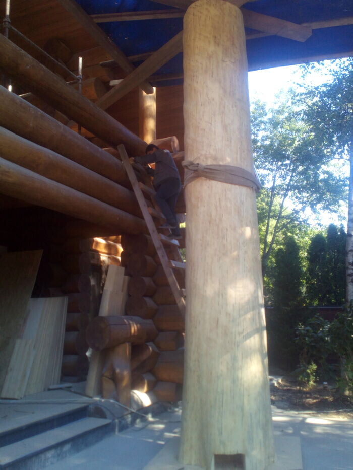 В предыдущем посту вскользь упомянул винтовую лестницу из кедра. Ограниченное количество фотографий в посту не позволили разместиться там. Кстати, опубликовал здесь интимные эксклюзивные фото, нигде и никто их ещё не видел. Итак, лестница. Когда приехал туда, то увидел это: Большущий стол с диаметром в основании 110 см. Эту лестницу уже начали делать некие плотники, но, видимо, переоценили свои силы. Испугались, взяли аванс и уехали "в отпуск". Конечно, безвозвратно. Но, хотя бы, поставили столбец и напилили ступеней. Кстати, вот они: Взялся за работу с некоторой долей переживания. Новый опыт требовал нестандартных решений, но плотницкая смекалка выручала как всегда. Одной из первых задач была разметка осей ступеней, чтобы они получились на одинаковом расстоянии друг от друга. Тут меня охватил ступор и моей смекалки не хватило. Обратился к прорабу, он выслушал, отошёл на 5 минут по другим вопросам и вернулся с решением.А ты нарисуй окружность вокруг столба и раздели на равные части". Т
