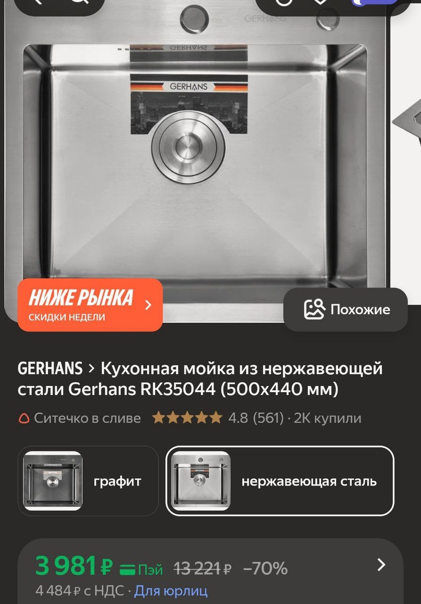 π»ΠΡΡ ΠΎΠ½Π½Π°Ρ ΠΌΠΎΠΉΠΊΠ° ΠΈΠ· Π½Π΅ΡΠΆΠ°Π²Π΅ΡΡΠ΅ΠΉ ΡΡΠ°Π»ΠΈ Gerhans RK35044 (500Ρ 440 ΠΌΠΌ) - 3981Ρ (Ρ.ΠΏΡΠΉ)