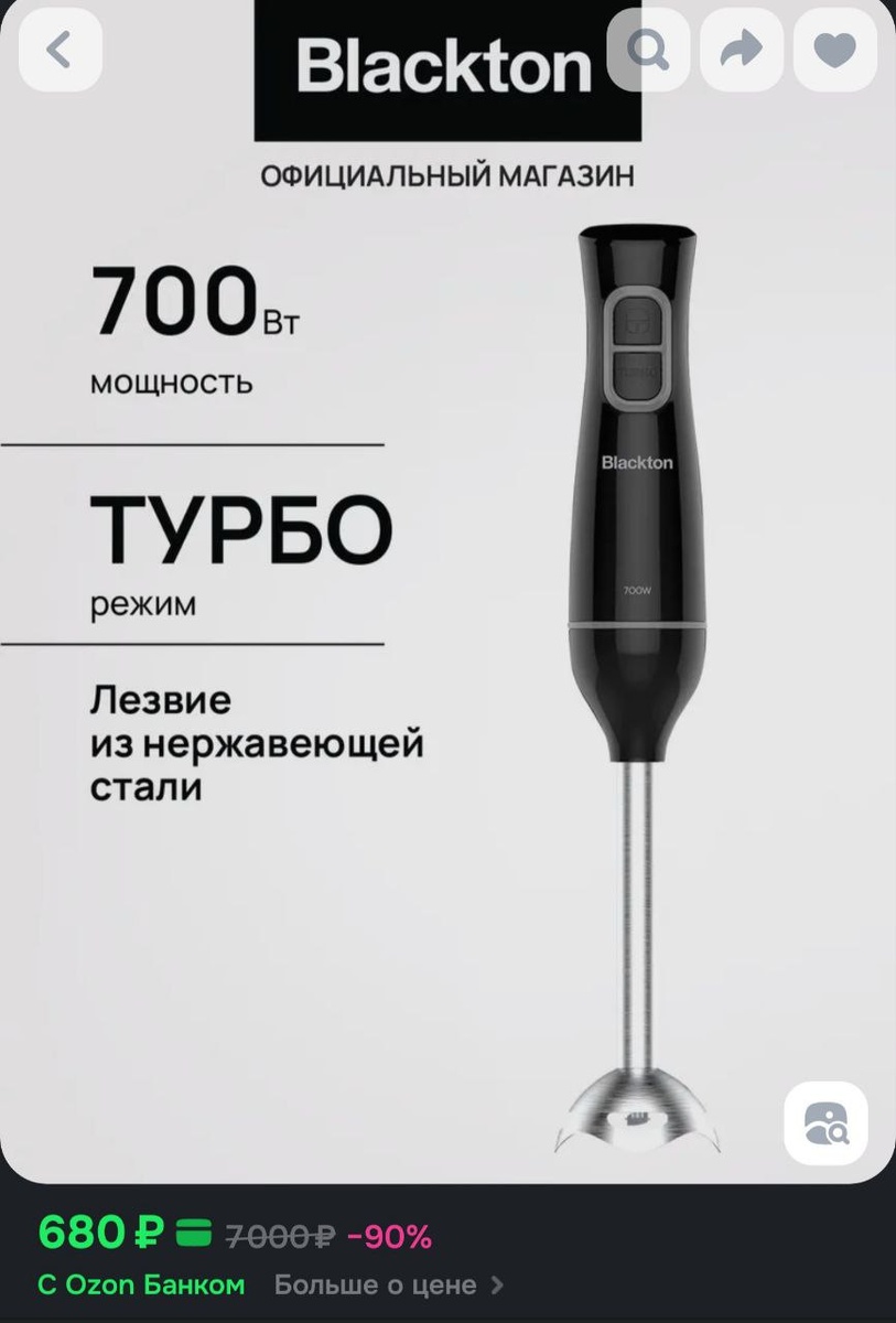 π¦Π ΡΡΠ½ΠΎΠΉ ΠΏΠΎΠ³ΡΡΠΆΠ½ΠΎΠΉ Π±Π»Π΅Π½Π΄Π΅Ρ Blackton Bt HB700S Π§Π΅ΡΠ½ΠΎ-ΡΠ΅ΡΡΠΉ - 680Ρ