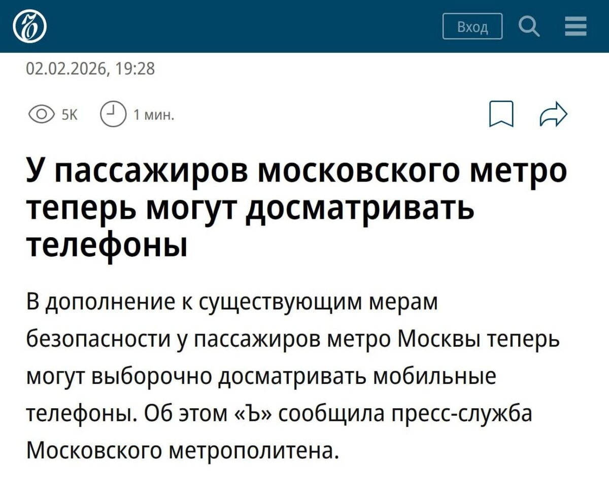 📲 У пассажиров Московского метро могут досматривать телефоны. Сотовые москвичей в метро могут досматривать в дополнение к уже существующим мерам безопасности в случае необходимости, заявили в Дептрансе.. Будут спрашивать за отсутствие мессенджера MAX?