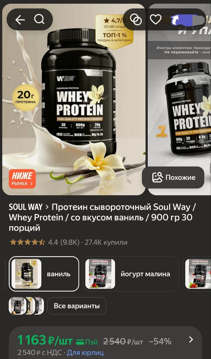 π»ΠΡΠΎΡΠ΅ΠΈΠ½ ΡΡΠ²ΠΎΡΠΎΡΠΎΡΠ½ΡΠΉ Soul Way / Whey Protein / ΡΠΎ Π²ΠΊΡΡΠΎΠΌ Π²Π°Π½ΠΈΠ»Ρ / 900 Π³Ρ 30 ΠΏΠΎΡΡΠΈΠΉ - 1163Ρ (Ρ.ΠΏΡΠΉ