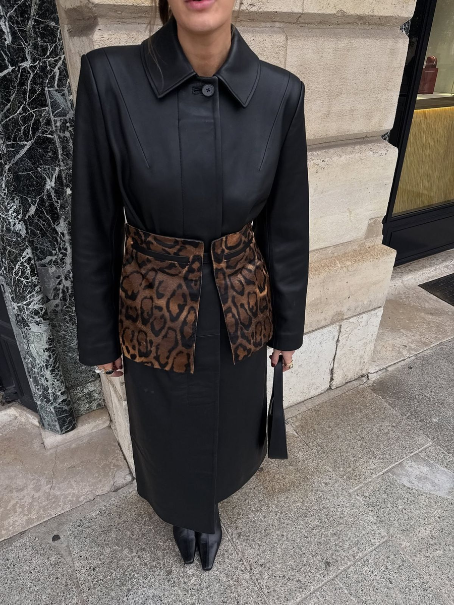 Что ж, баска возвращается в наши гардеробы. Но если в 2015-м мы носили топы, пиджаки с басками, то сегодня баска – это отдельный аксессуар. Многие модницы носили на бедрах платок прошлым летом. Так вот, это была своеобразная подготовка к баске. Одним из брендов-популяризаторов баски в этом сезоне стал Chloe. Последнее время это модный Дом, который задает самые главные тренды. На фото ниже образ из их коллекции pre-fall 2026, и в ней как раз будет много басок-поясов. Басок было много и на других показах. Их надевают поверх джинсов, брюк, платьев. Есть как кожаные варианты, так и из костюмной ткани, контрастные или в тон вещам. Словом, актуальны вообще любые. Но важно, чтобы баска не напоминала просто широкий кожаный пояс. Это устаревший вариант. То есть модная баска сегодня скорее напоминает мини-юбку. Устаревший пример на фото ниже. Баска хорошо подчеркивает талию и зрительно увеличивает бедра. Если у вас фигура типа «прямоугольник», то баска может хорошо ее скорректировать. Такж