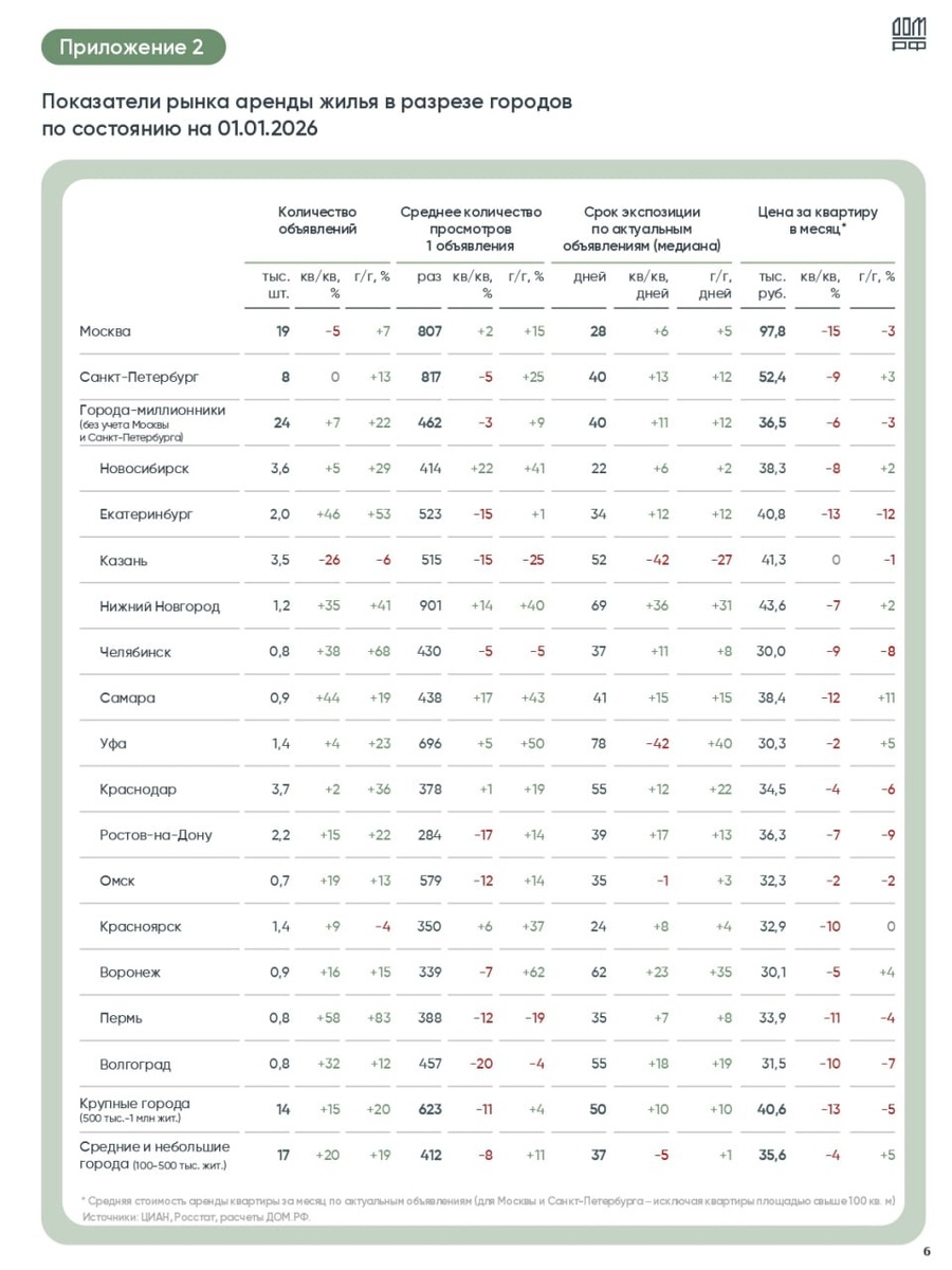 Объем аренды увеличился до 95 тыс. объявлений. 🔵В Москве и Питере — на 7% (19,4 тыс.) и 13% (8,4 тыс.) соответственно. 🔵В других крупных городах — на 22% (до 23,8 тыс.) 📶 По словам аналитиков, из-за большого числа новых квартир в аренде цены почти не выросли: 🔵 в регионах они остались на уровне 2024 года — 37,5 тыс. рублей; 🔵 в Петербурге поднялись на 3% — 52 тыс. рублей; 🔵 в Москве впервые за три года снизились на 3% — 98 тыс. рублей.