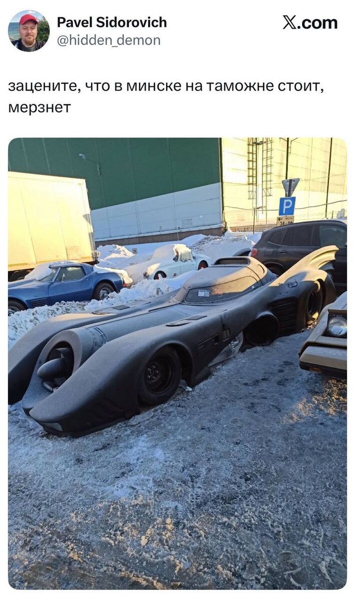 В Беларуси на таможне под Минском засветился Бэтмобиль — похоже, Бэтмен тоже задумался об экономии и заказал себе тачку через импорт, как нормальные ребята.
