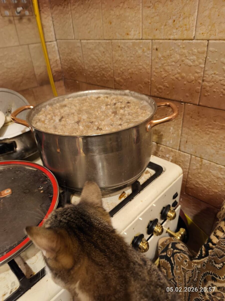 Вот такая кастрюля каши с мясным варится собаням ежедневно
