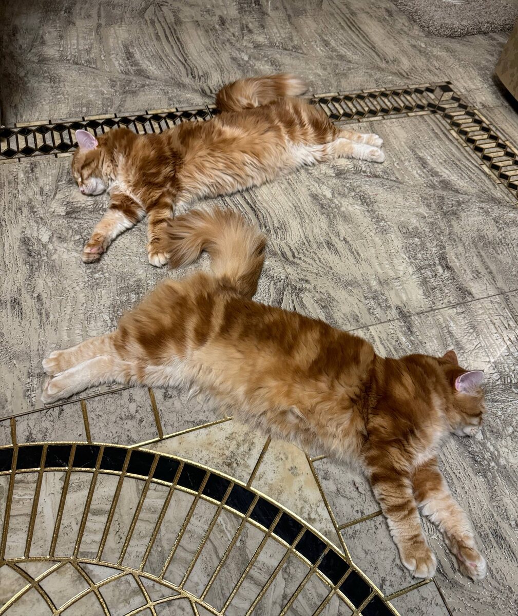 Бесячки утомились и маму радуют красивой раскладкой на теплом полу
