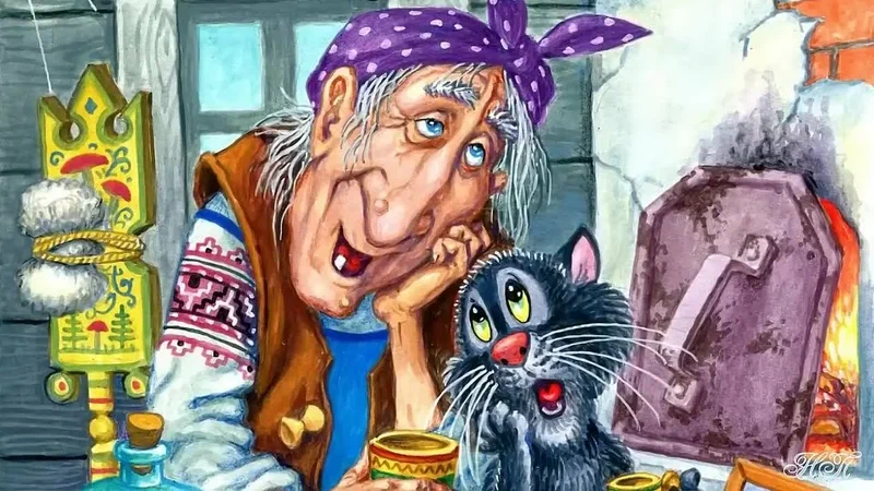 Баба Яга, уютно устроившись в кресле, вязала себе шаль из козьего пуха и между делом вела беседу с Котом. За окном шумел лес, стемнело. Кот зажёг лампу и пошёл наливать чаю с медом себе и Яге. Тут в дверь заскреблись.