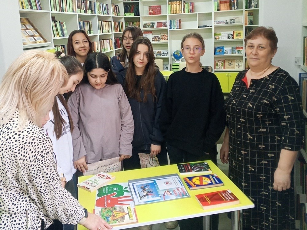 напрасно» для учащихся 6-7 кл. частной школы «Аталык» пгт. Яблоновский (педагоги: Виктория Геннадьевна Даниш, Анна Николаевна Мурзак). Библиотекари рассказали о том, что наркомания — это смертельно опасная болезнь, которая трудно поддаётся лечению и на сегодняшний день не имеет достаточно эффективных методов. Провели обзор литературы, как художественной, так и медицинской книги. Это позволяет рассмотреть проблему с разных сторон: эмоциональной и научной. Все участники получили буклеты с информацией о пагубных последствиях употребления наркотиков и призывом вести здоровый образ жизни.